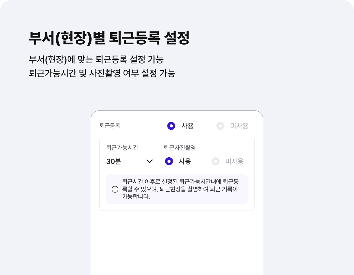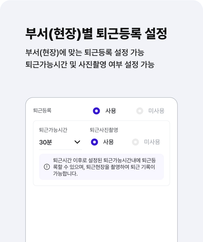 부서(현장)별 맞춤 세부 운영 및 관리가 가능해요.